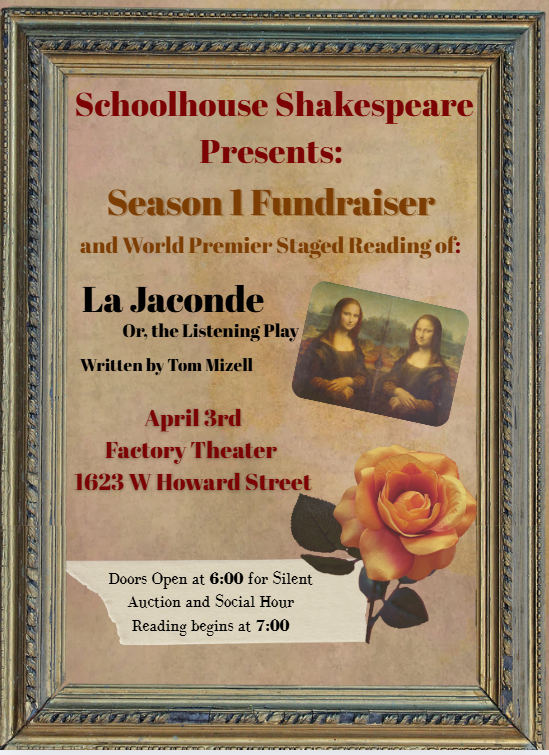 Join us for a Silent Auction fundraiser and a staged reading of an exciting new play- Hosted at the Factory Theater on April 3rd, 2026